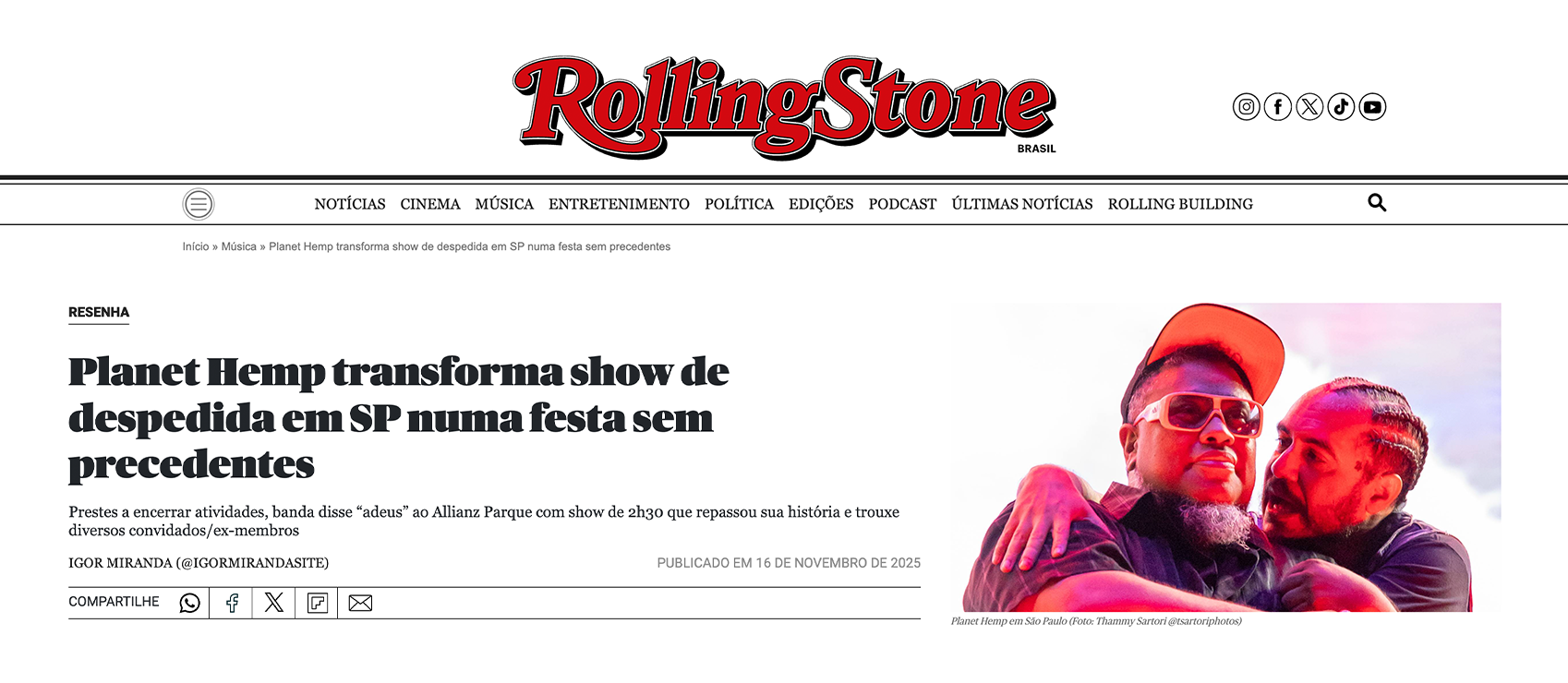 A banda que canta “Legalize Já” há 30 anos, se despediu dos palcos em um show icônico. Um momento histórico, e possivelmente a maior concentração de maconheiros por metro quadrado no mundo. E a gente sabe: onde há fumaça, há fome. Quero dizer, LARICA.